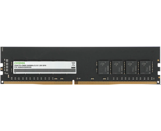 ОЗУ Digma DGMAD43600032D DDR4 32GB 3600MHz RTL PC4-28800 CL18 DIMM 288-pin 1.35В dual rank Ret