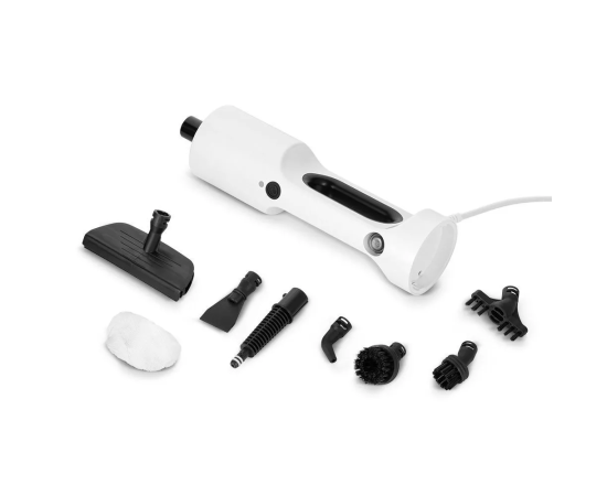 Конструкция «2 в 1» предусматривает наличие ручного модуля, который используется с насадками: плоская и круглые нейлоновые щётки, насадка для отпаривания с резиновым скребком, тряпка для отпаривания. С их помощью можно очистить любые вещи в доме.