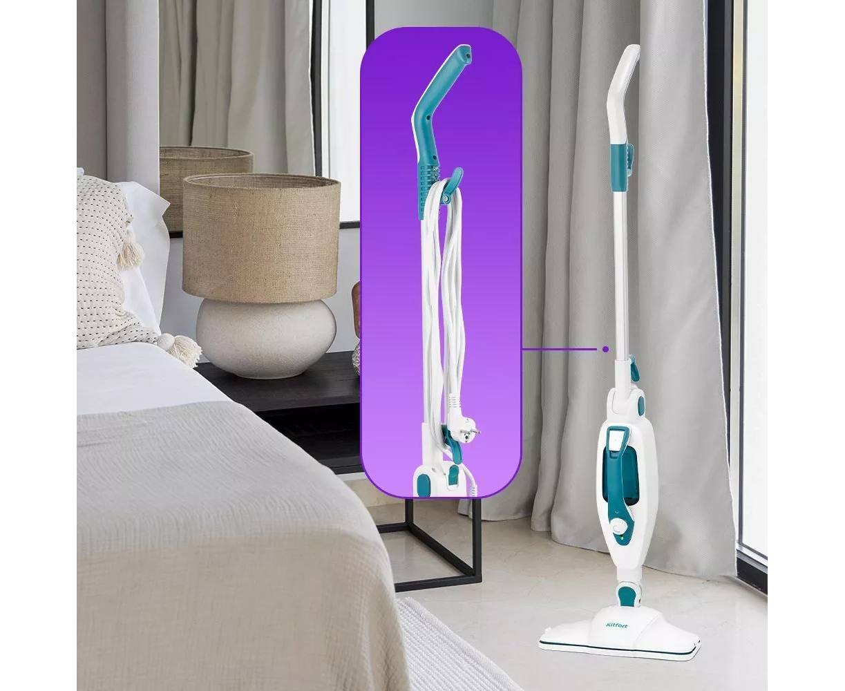 На корпусе предусмотрены держатели для шнура. КТ-1080 очень лёгкая и простая в использовании. Уборка с ней будет проходить быстро и легко. Для паровой швабры не нужны чистящие средства, поэтому она станет идеальным решением уборки дома для аллергиков.