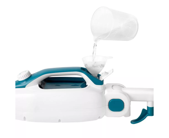 Устройство оснащено съёмным резервуаром для воды емкостью 350 мл, что позволяет непрерывно убираться от 10 до 14 минут. Во время работы паровой швабры вода из резервуара, проходя через фильтр, подается в бойлер. Фильтр очищает воду от грязи и пыли.