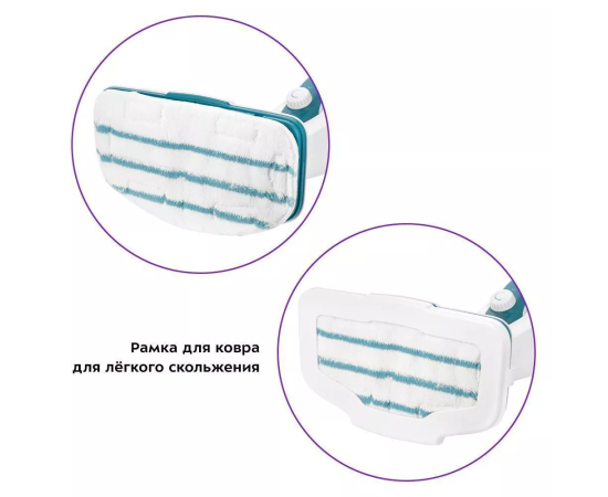 Тряпка для пола устанавливается на напольную щётку с помощью липучек. Её можно стирать в стиральной машине в тёплой воде. В комплекте есть рамка для ковра, которая обеспечивает лёгкое скольжение щётки во время чистки.