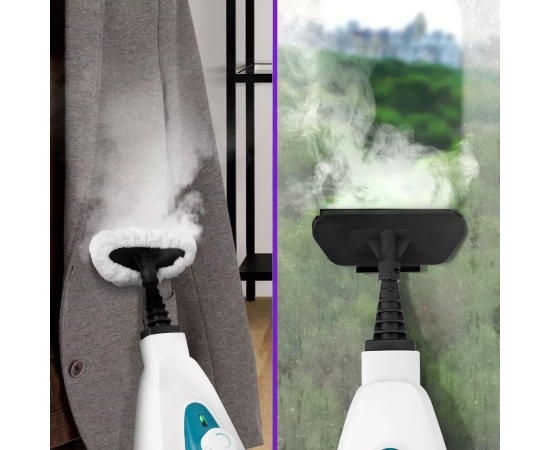Чтобы помыть окна, зеркала и кафельную плитку, присоедините к парогенератору насадку для отпаривания со скребком для стекла, и прибор можно будет использовать как стеклоочиститель. Вы можете отпарить одежду или очистить обивку мягкой мебели.