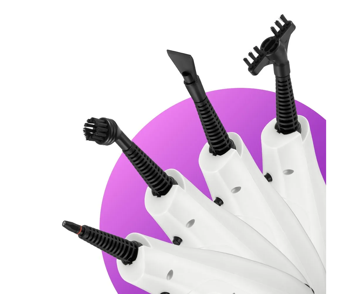 Конструкция «2 в 1» предусматривает наличие ручного модуля паровой швабры, который удобно использовать с насадками. С помощью насадок можно очистить большинство вещей в доме, а также отпарить одежду.