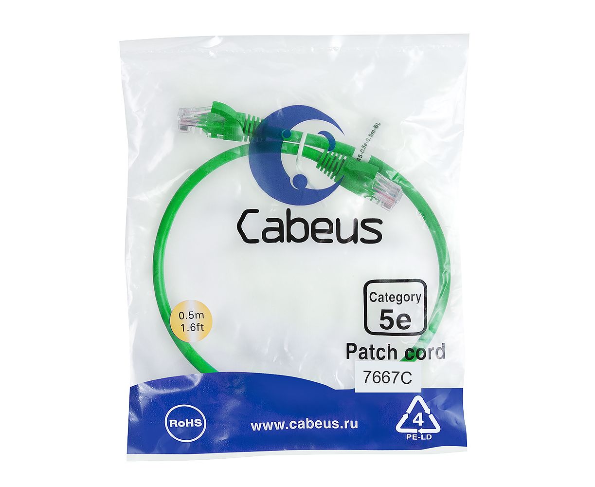 Патч-корд Cabeus PC-UTP-RJ45-Cat.5e-0.5m-GN-LSZH неэкранированный, зеленый