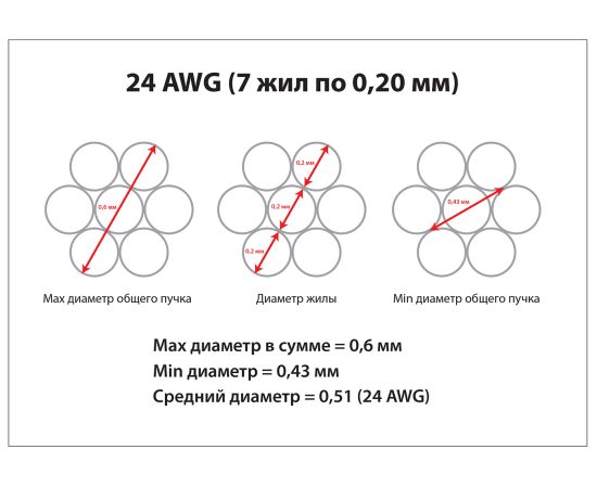 Диаметр проводника: 24 AWG (7х0,20 мм)