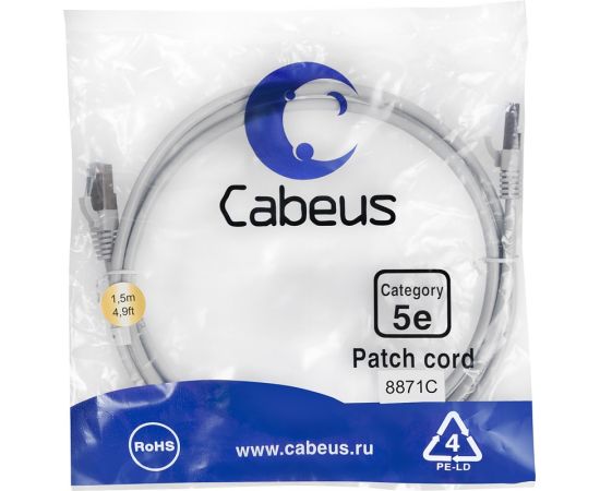 Патч-корд Cabeus PC-UTP-RJ45-CAT.5E-1.5M-LSZH неэкранированный, серый