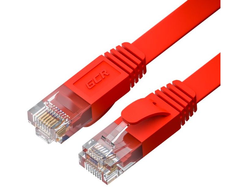Патч-корд Greenconnect Prof GCR-52851 плоский прямой 10.0m, UTP медь RJ45, кат.6, красный