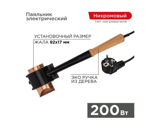 Паяльник ПД Rexant 12-0292 200Вт, 230В, «Топор», деревянная ручка, ЭПСН
