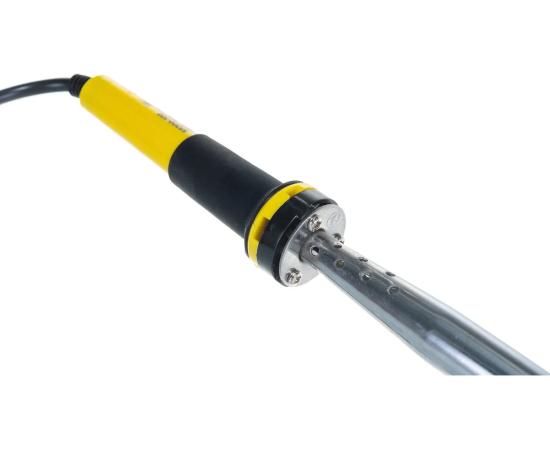 Паяльник с двухкомпонентной рукояткой и долговечным жалом, в комплекте припой и подставка, 100Вт, клин STAYER PROFI 55300-100 - надежный и долговечный электрический прибор, выполненный из высококачественных современных материалов, который служит для напаивания электронных компонентов на печатную плату, пайки и лужения медных проводников, а также отпайки различных деталей.