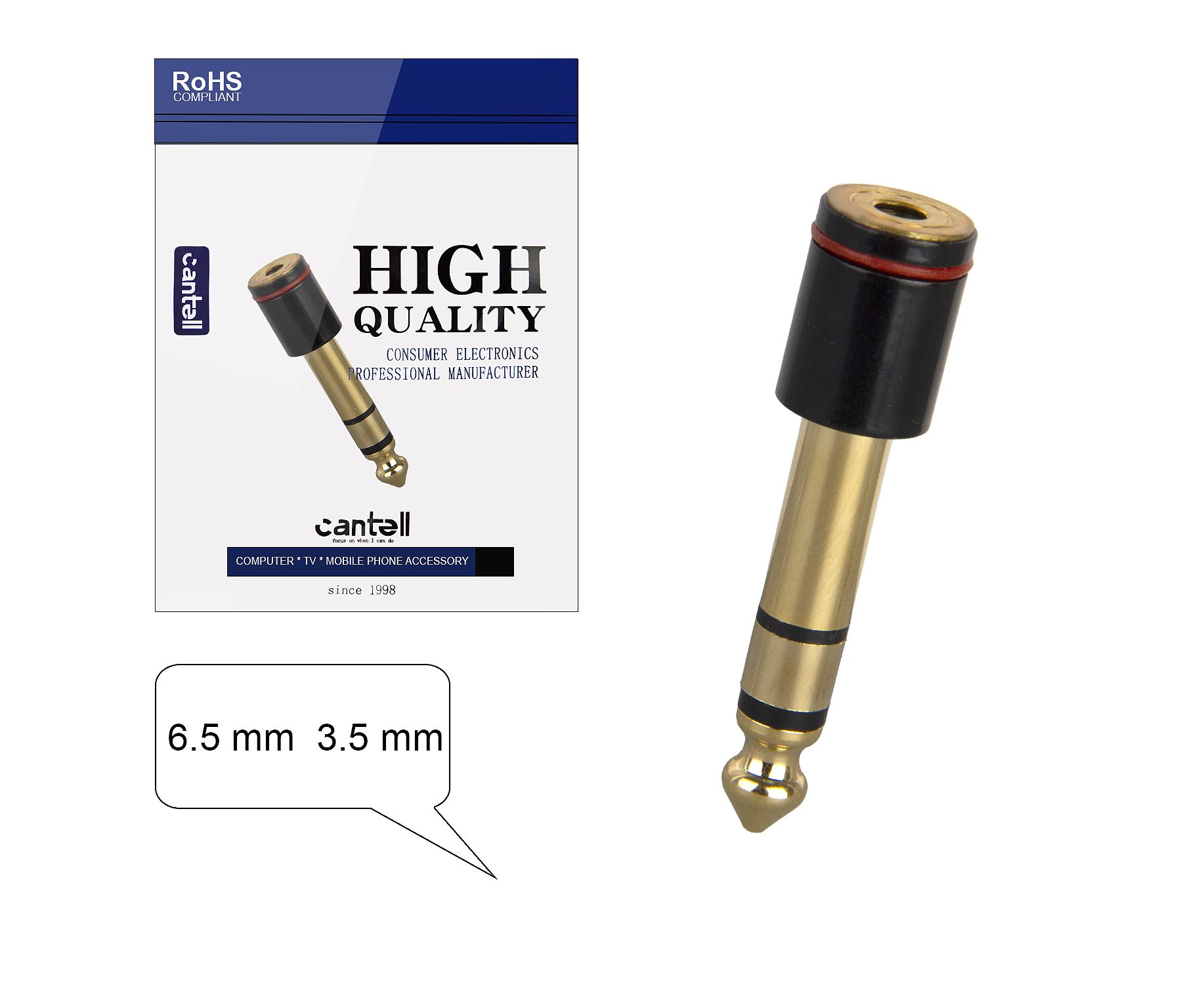 Переходник 6.5mm на 3.5mm female adapter (Gold)