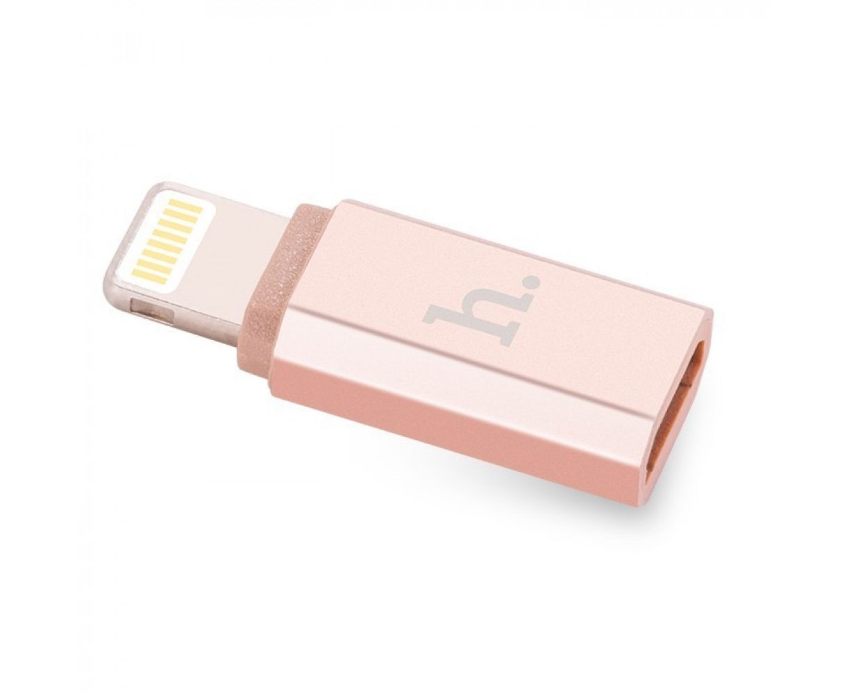 Переходник 8 pin - микро USB(f) HOCO, 0.05м, плоский, алюминий, цвет: розовое золото (1/200/1200)