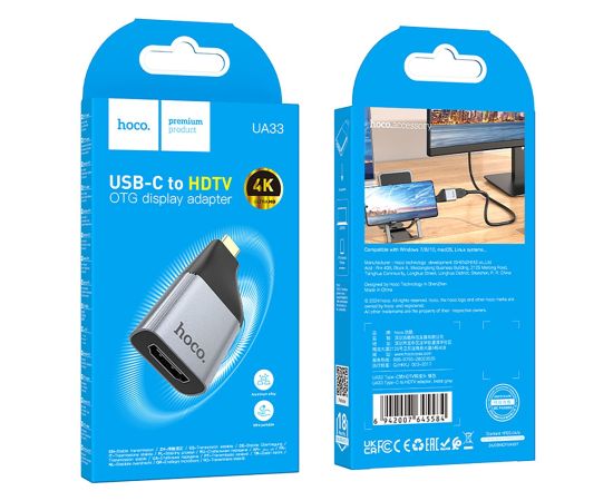 Переходник HDMI (м) - Type-C (п) Hoco UA33 (metal grey) (240952)