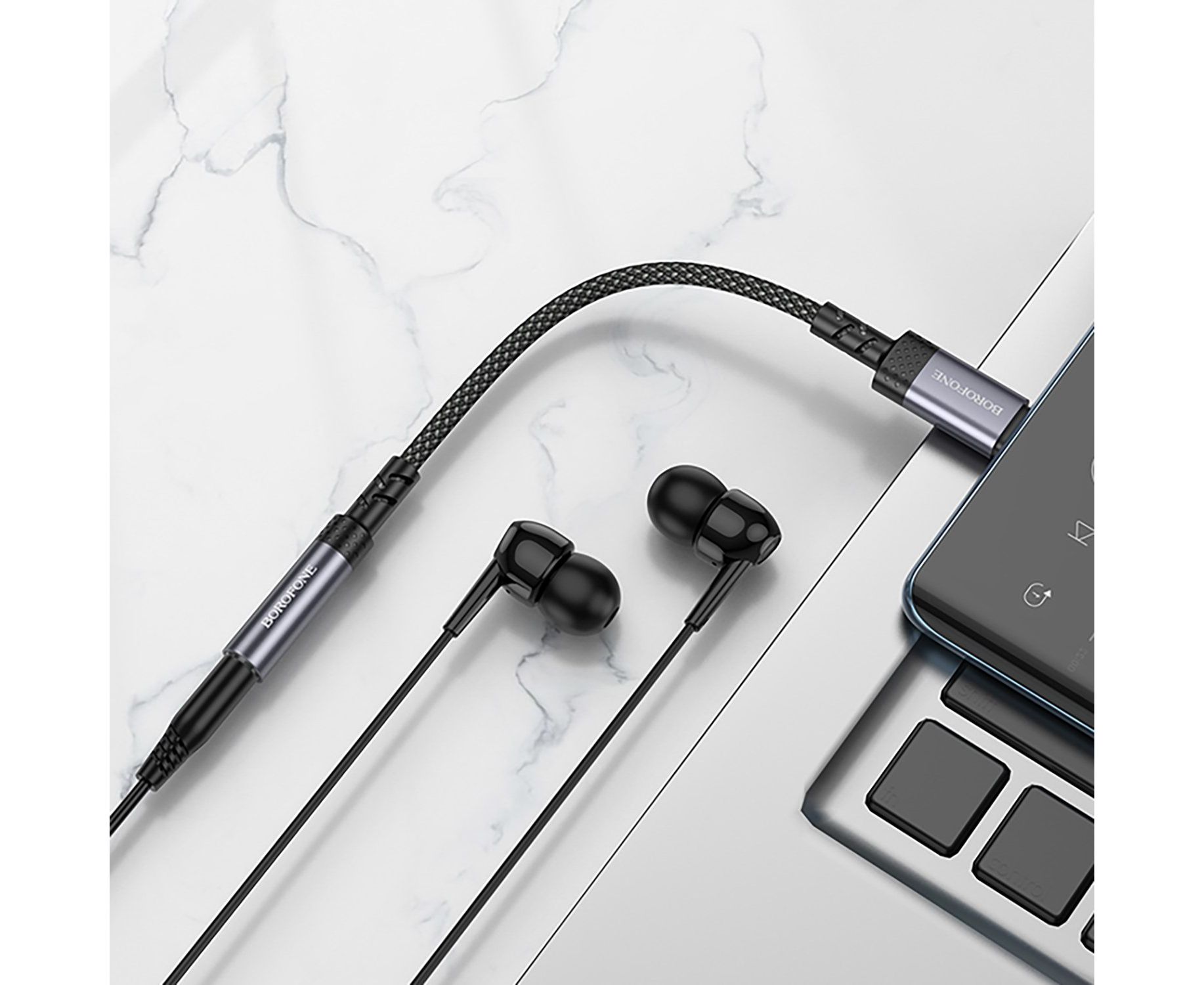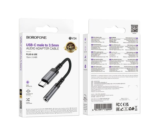 Переходник Jack 3.5 (м) - Type-C (п) Borofone BV24 Graceful (metal grey) (240962)