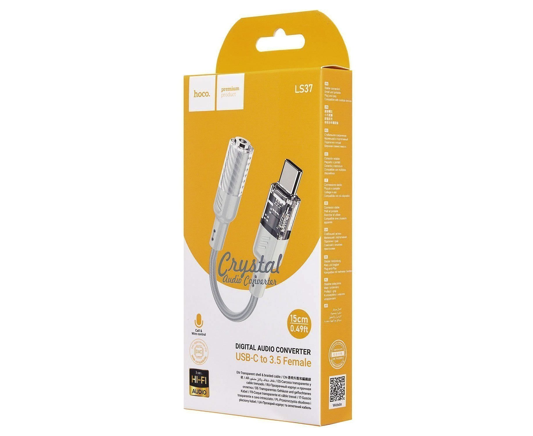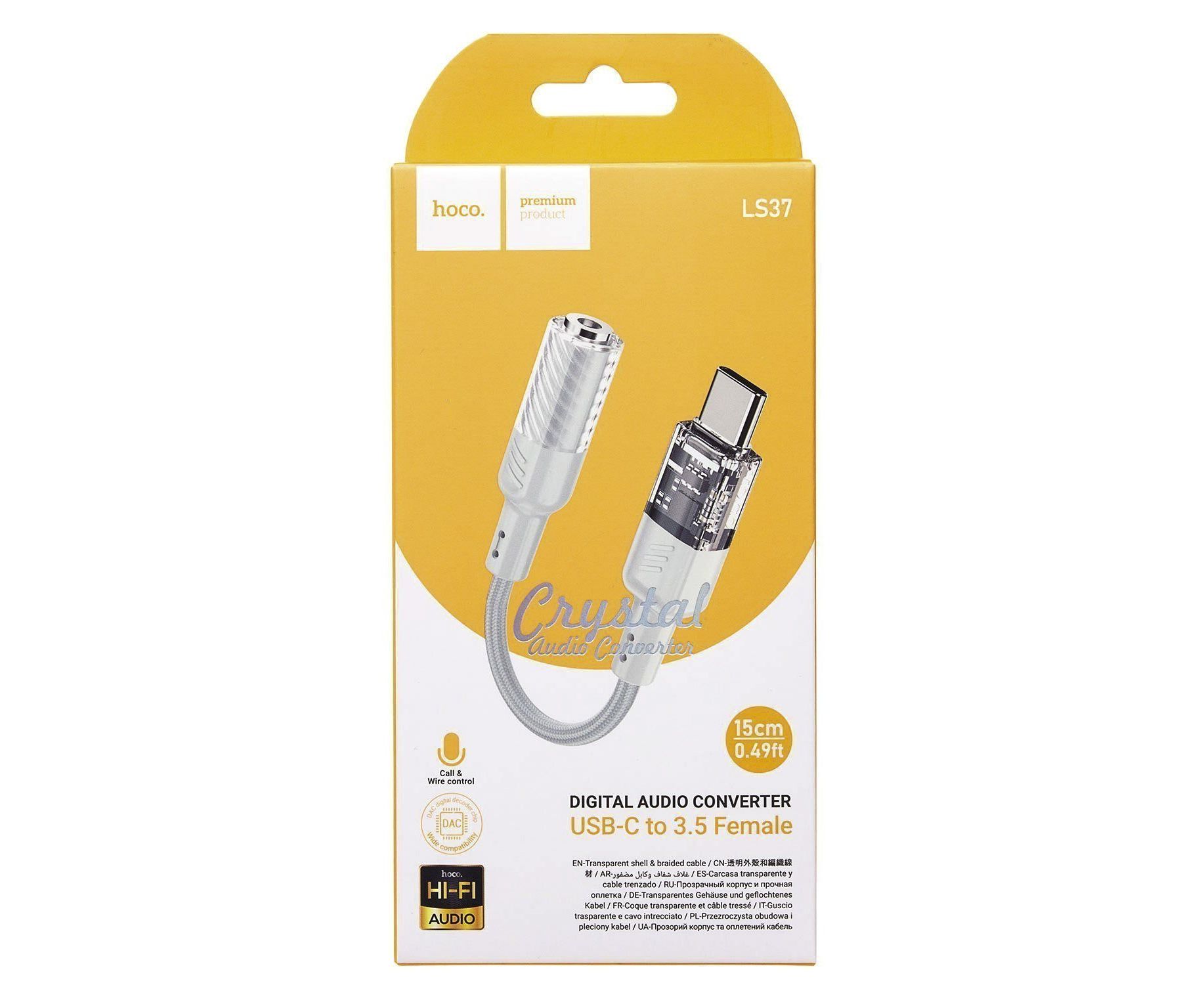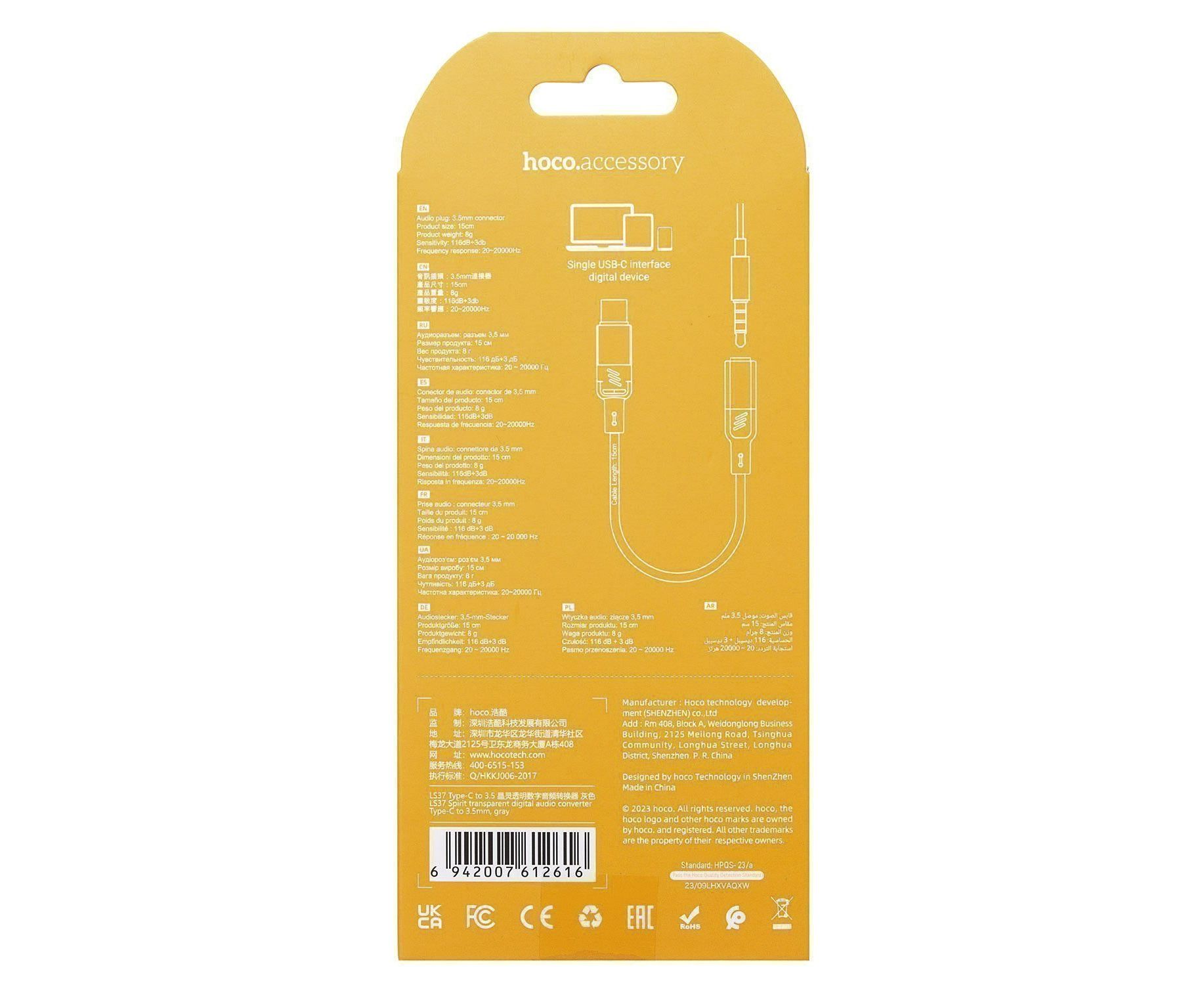 Переходник Jack 3.5 (м) - Type-C (п) Hoco LS37 Spirit 10см (gray) (225362)