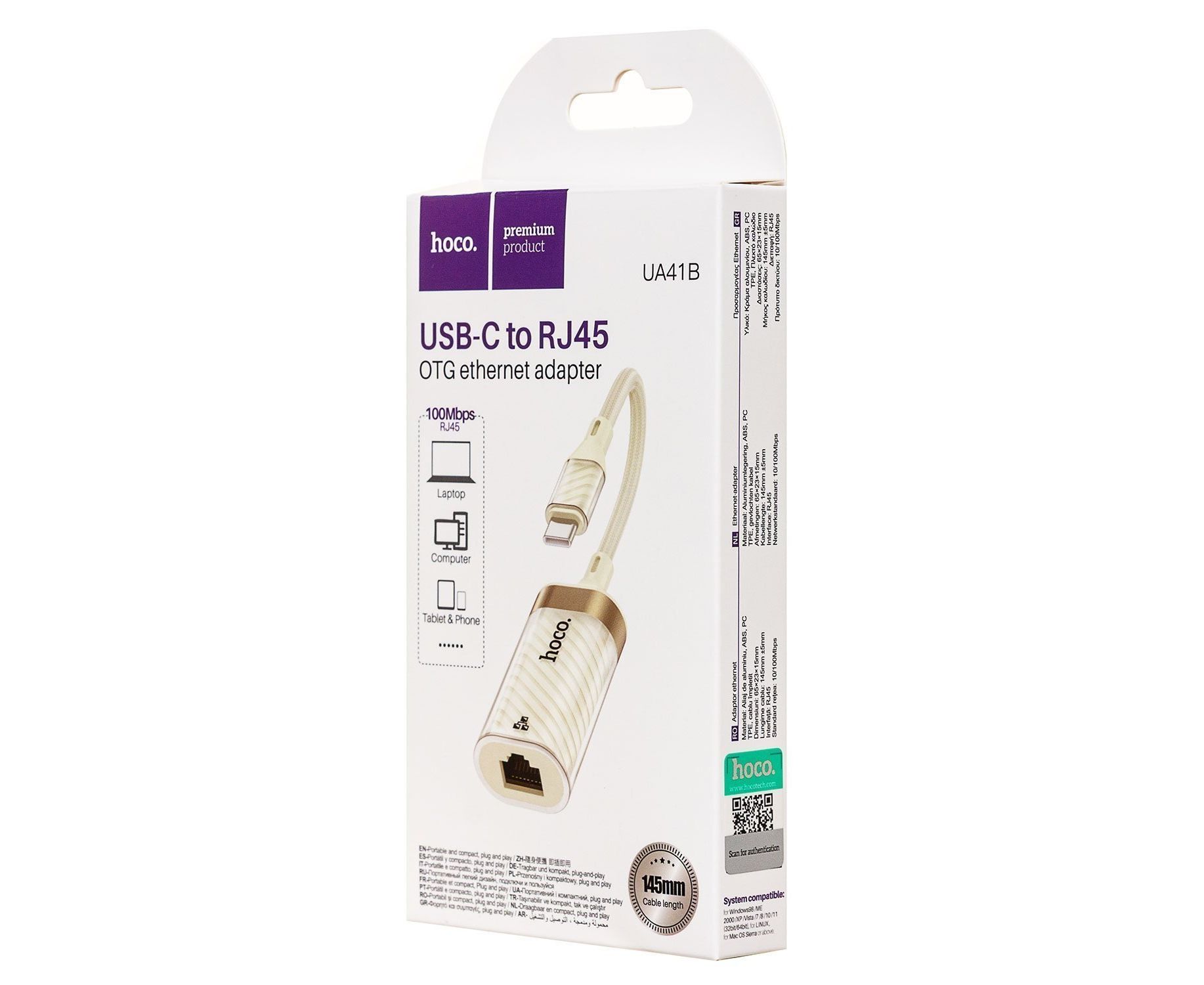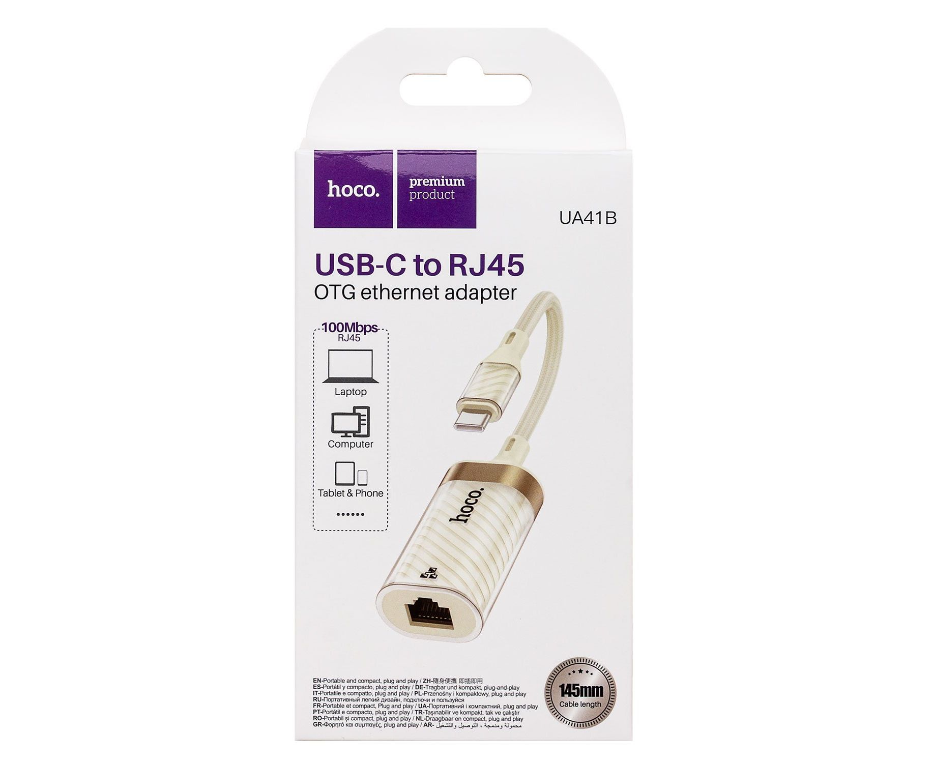 Переходник RJ45 (м) - Type-C (п) Hoco UA41B Crystal (apricot) (240956)