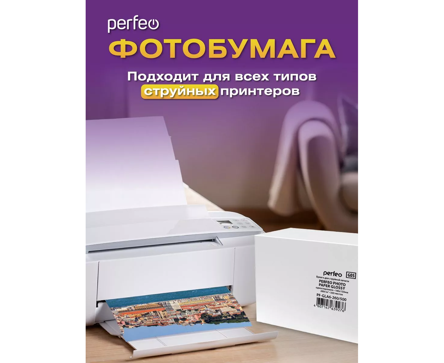 Фотобумага Perfeo 10х15 260 г/м2 глянцевая 500л (PF-GLA6-260/500) (G05)