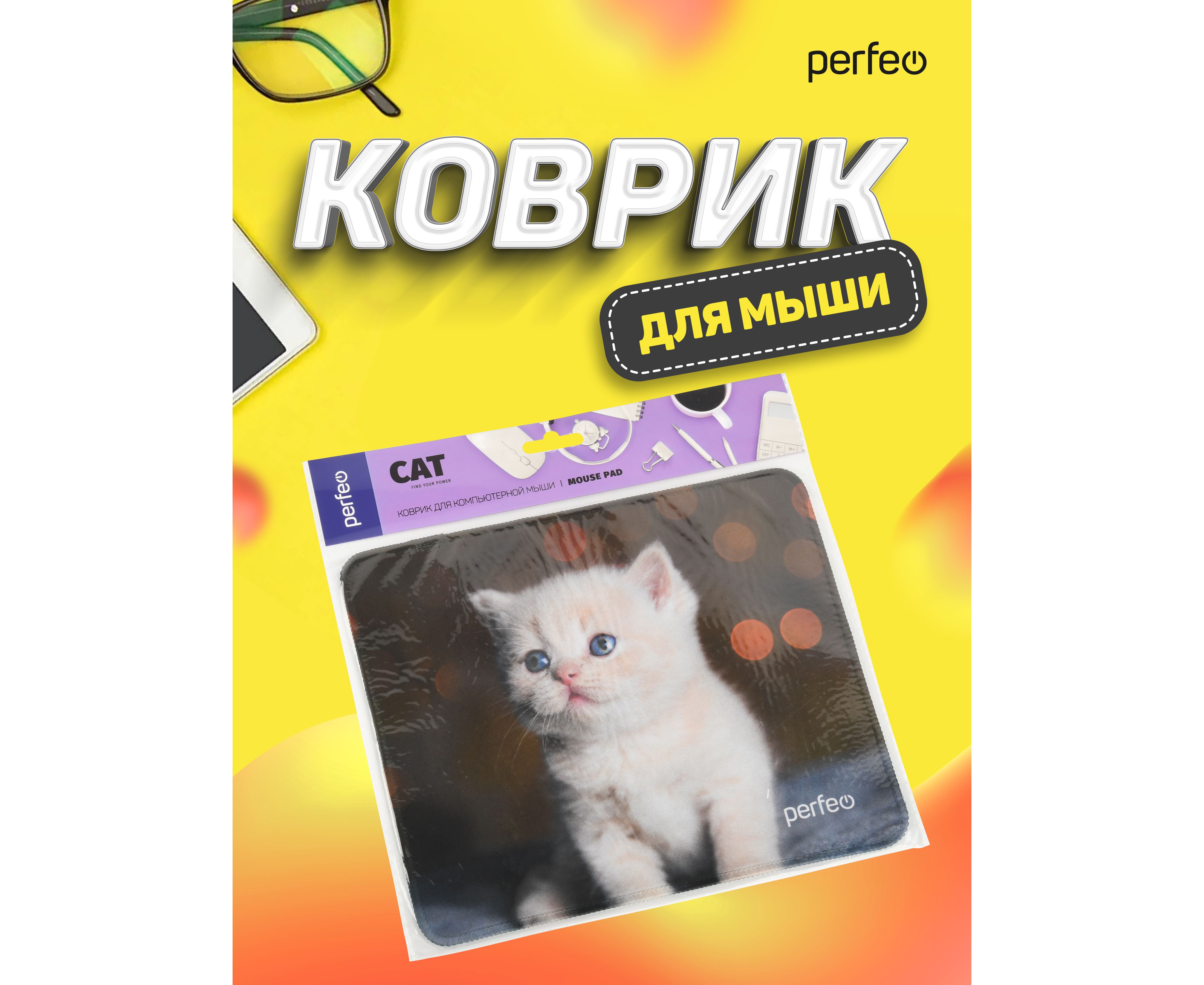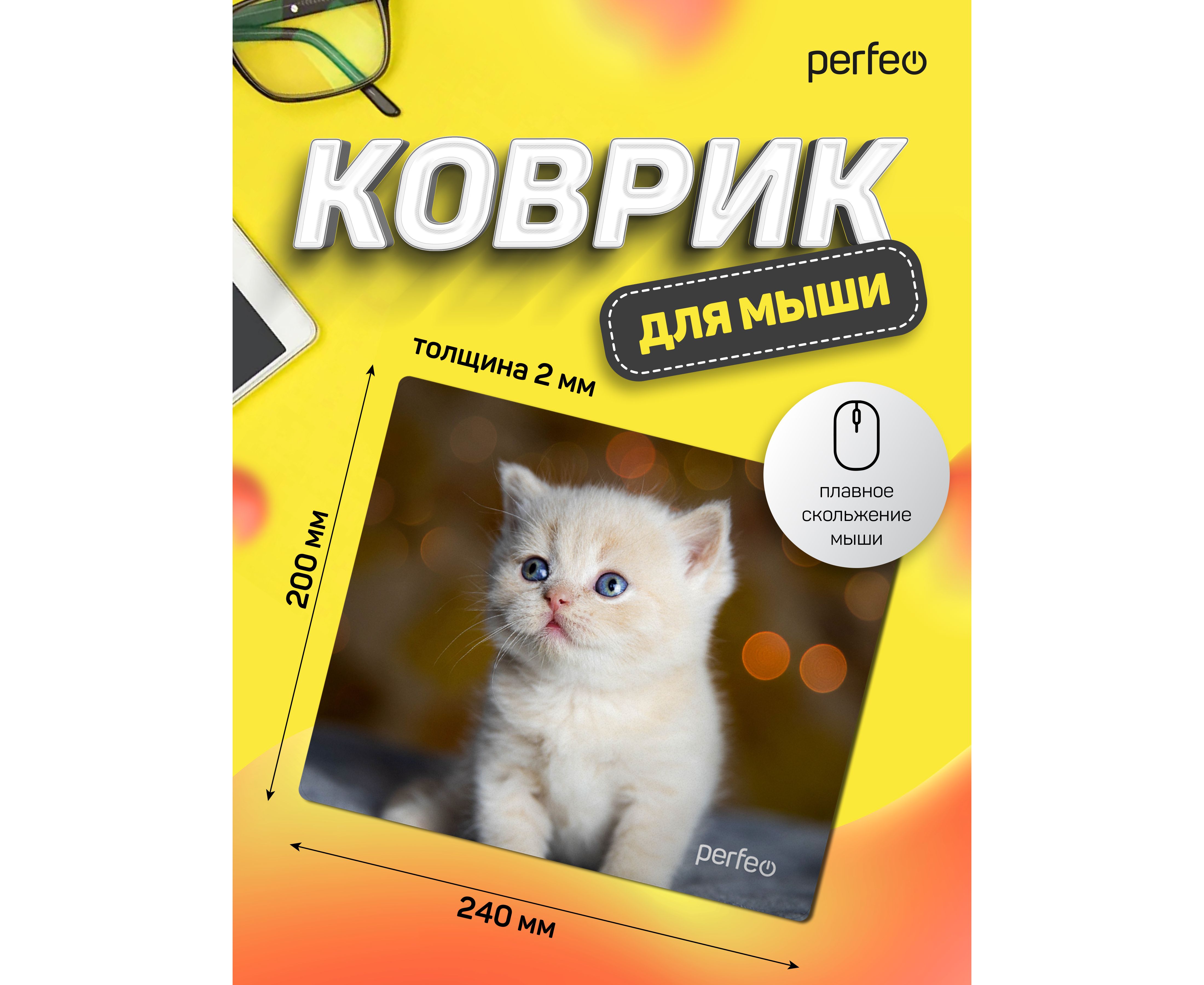 Perfeo Коврик для компьютерной мыши "Cat", Рис.17 (240*200*2 мм), ткань+резиновое основание