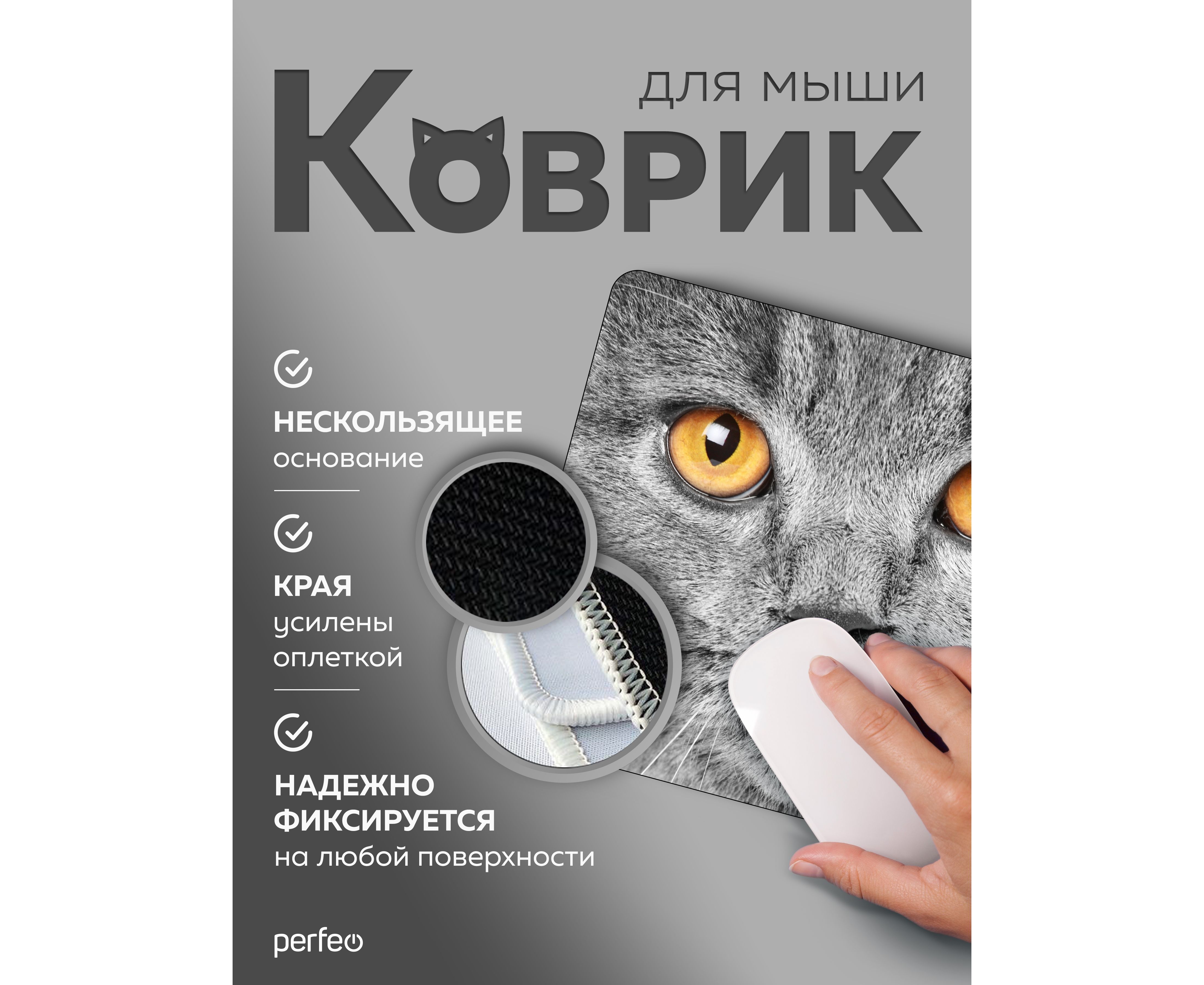 Perfeo Коврик для компьютерной мыши "Cat", Рис.42 (240*200*2 мм), ткань+резиновое основание