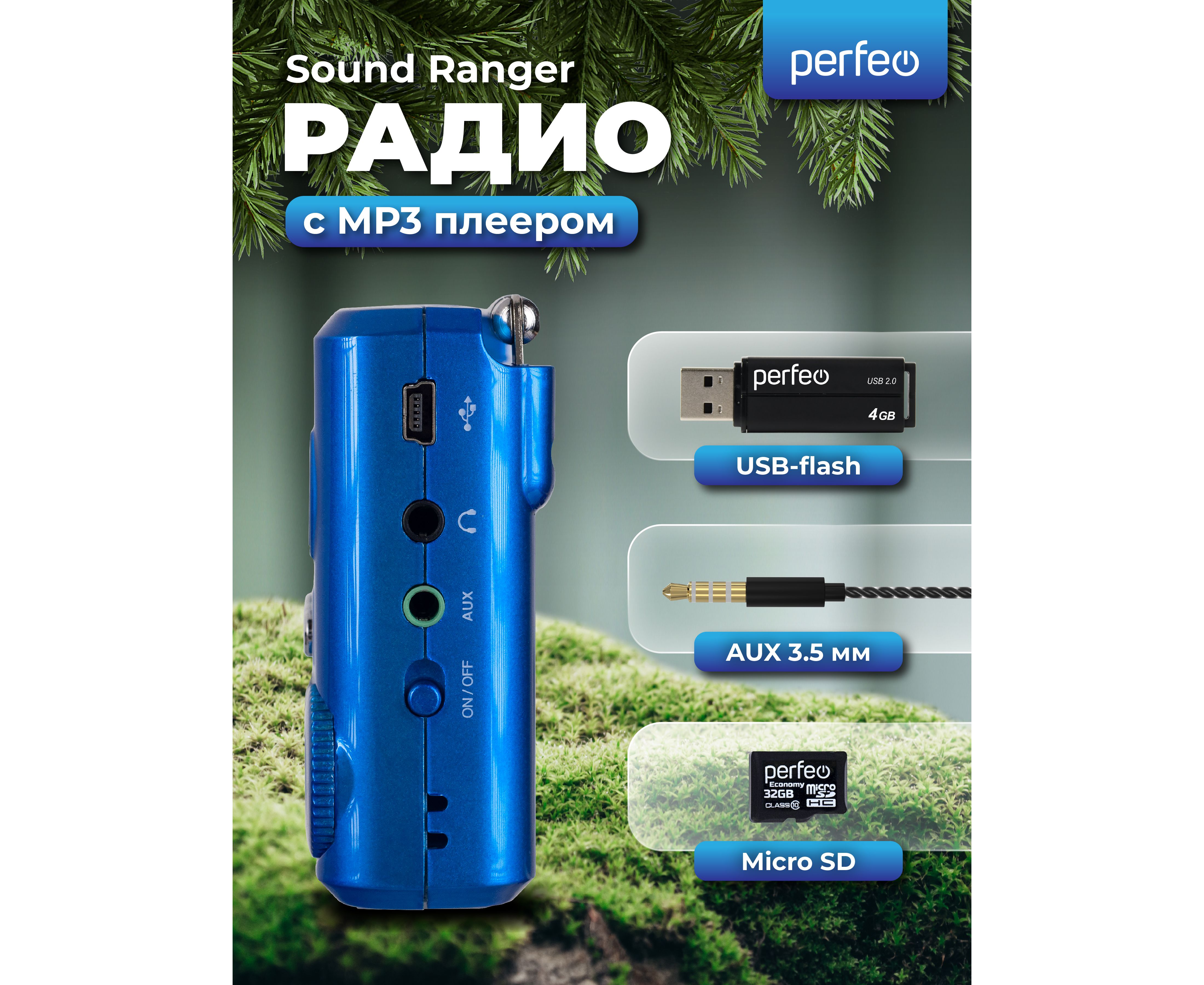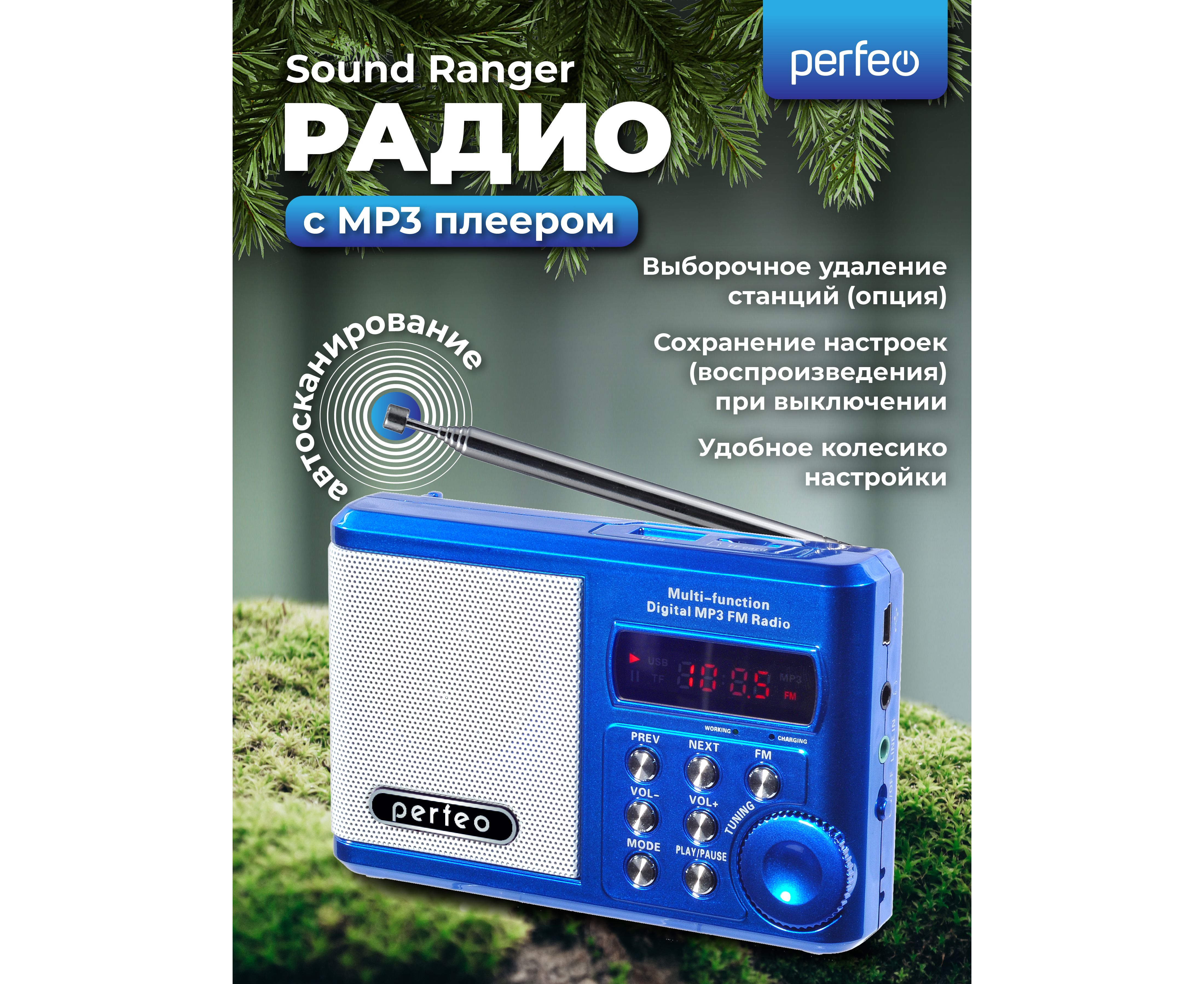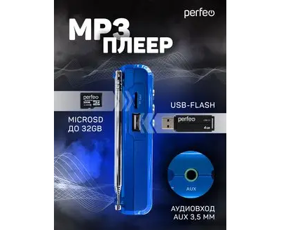 Радиоприемник цифровой Perfeo Sound Ranger, УКВ+FM, MP3 (USB/TF), USB-audio, BL-5C 1000mAh, синий (SV922BLU), (Арт. PF_3183)