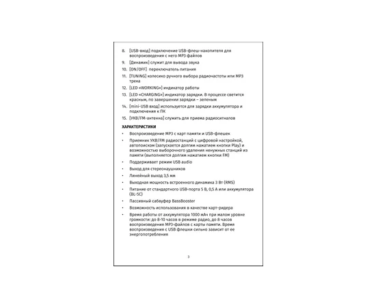 Инструкция - 1 шт; Гарантийный талон - 1; Кабель Mini USB - 1 шт; Радиоприемник - 1шт
