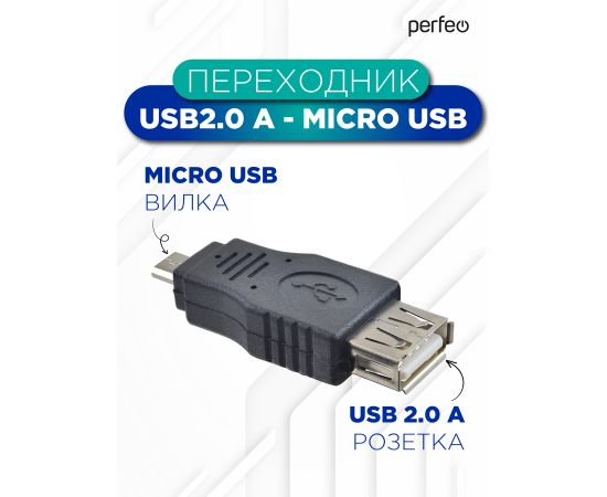 PERFEO Переходник USB2.0 A розетка - Micro USB вилка (A7015)