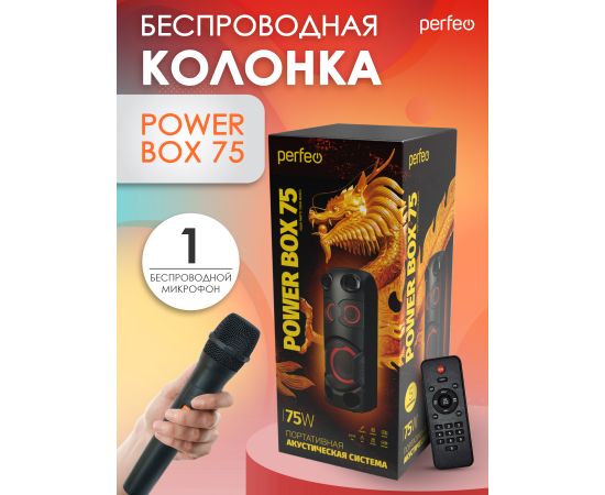 Портативная акустическая система Perfeo ”Power Box 75” EQ, MP3 USB/microSD, AUX, FM, 2xMIC, TWS черная