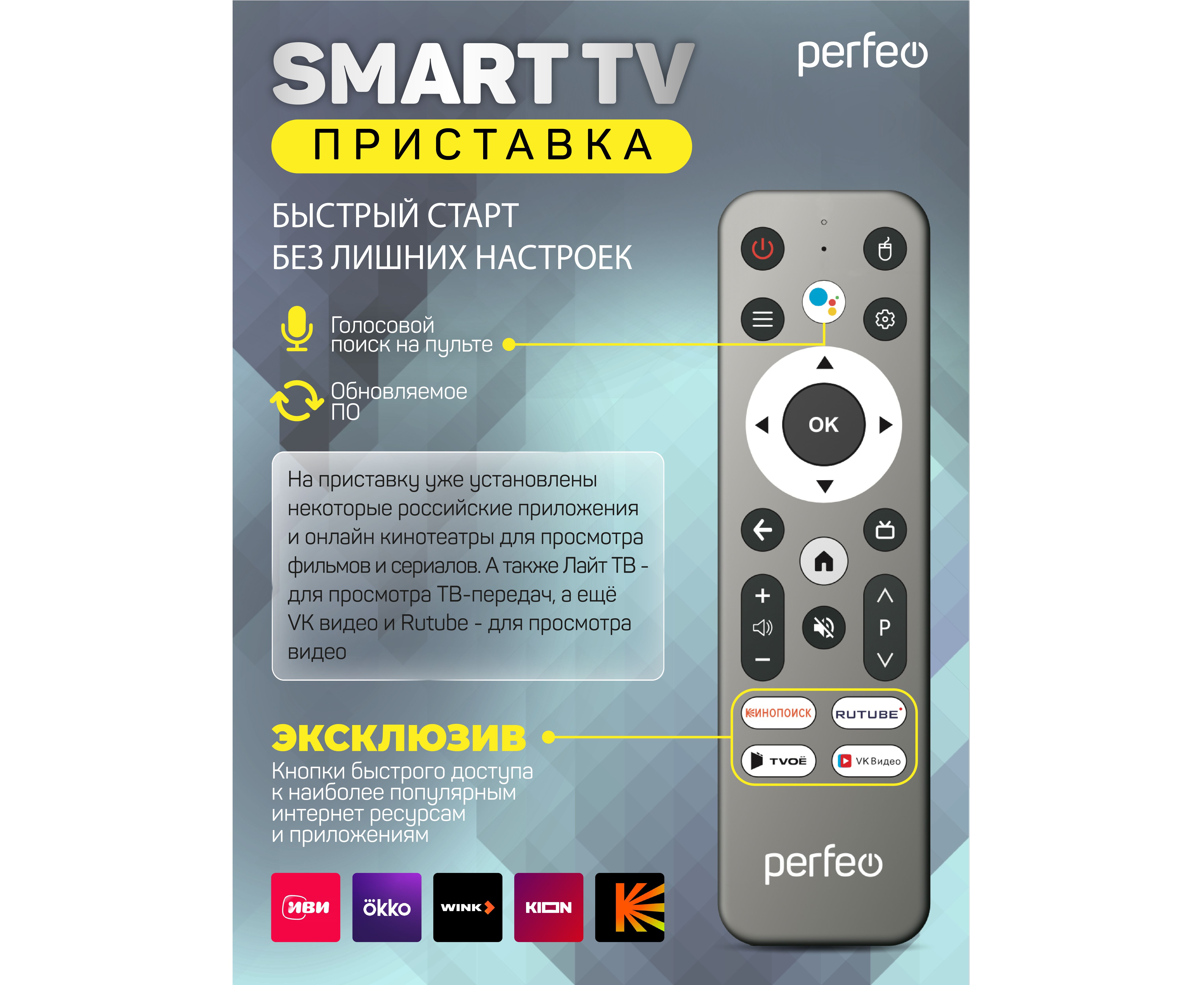 Приставка Perfeo SMART TV BOX "LOGIC 2/16", Allwinner H313, Android 10, 2Gb/16Gb, Пульт Bluetooth, (Арт. PF_A4555-C)