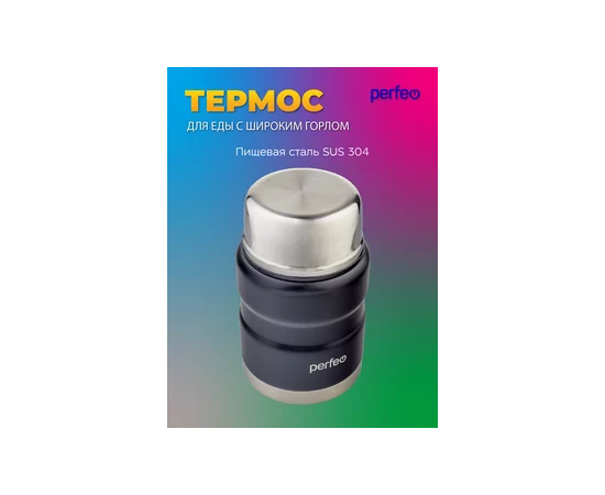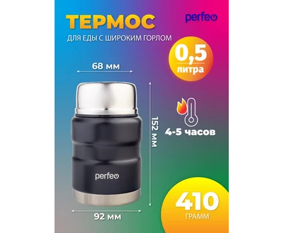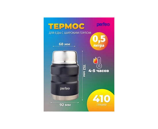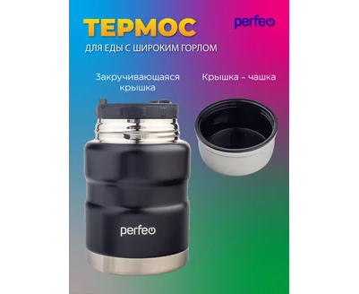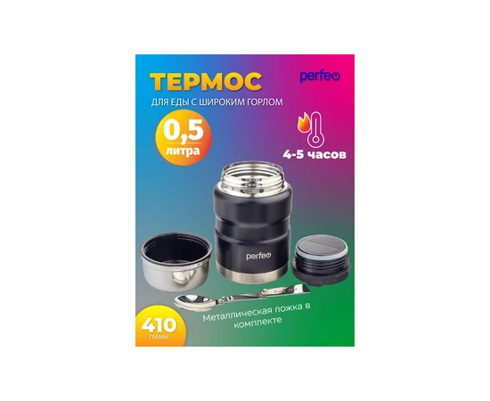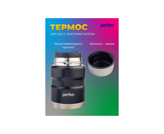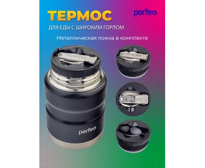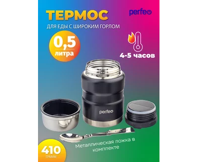 Термос для еды PERFEO с широким горлом, ложкой, объем 0,5 л., черный (PF_E1371)