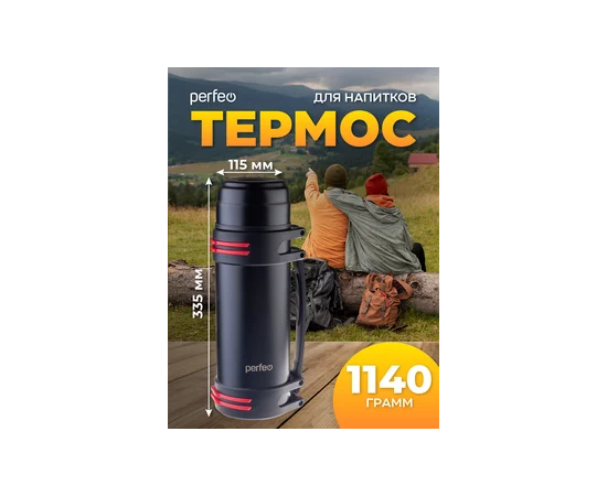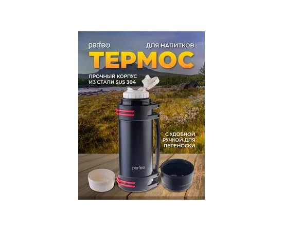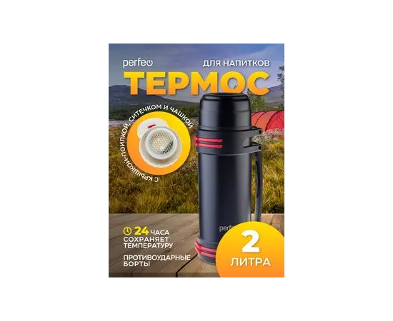 Термос для напитков PERFEO с крышкой-поилкой, ситечком, чашкой, ручкой, ремнем, объем 2 л., черный (PF_D0216)