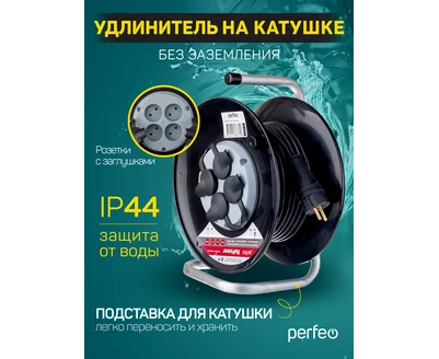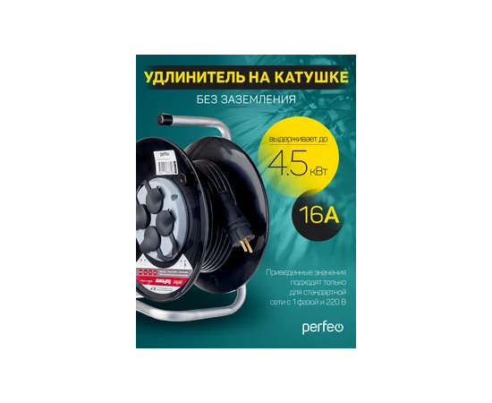 Удлинитель на катушке без заземления Perfeo "RU POWER" 20м 4гн 16А ПВС 2х2,5 IP44 (РБК16), (Арт. PF_C3370)