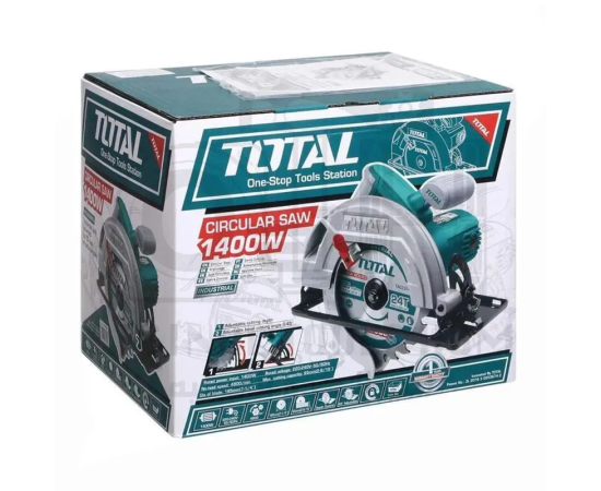 Циркулярная пила TOTAL TS11418526, мощностью 1400 Вт – не заменимый инструмент для всего спектра столярных работ.