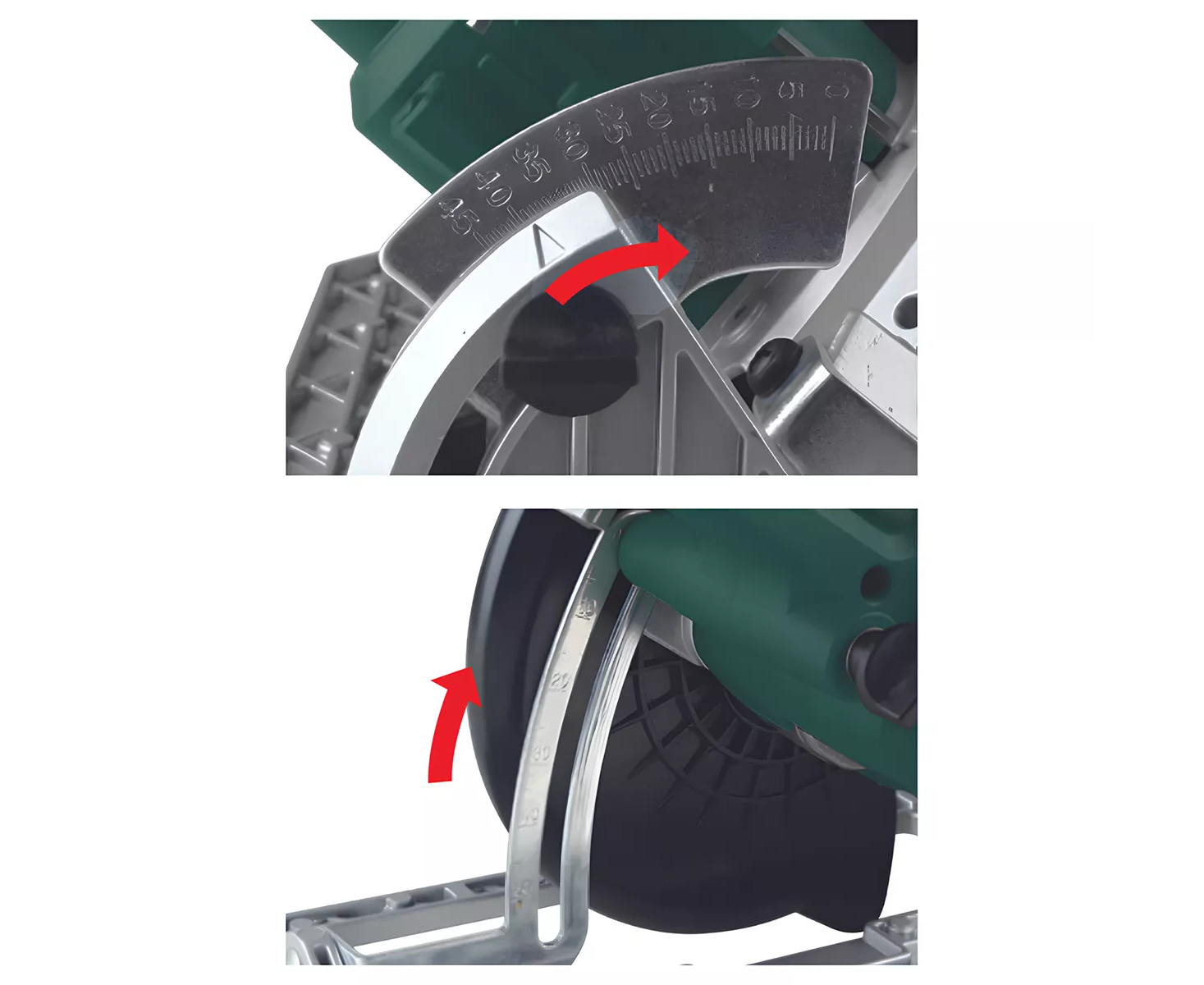 Наклон пилы влево/вправо 0/15/30/45 градусов