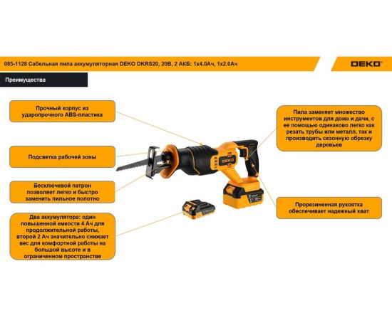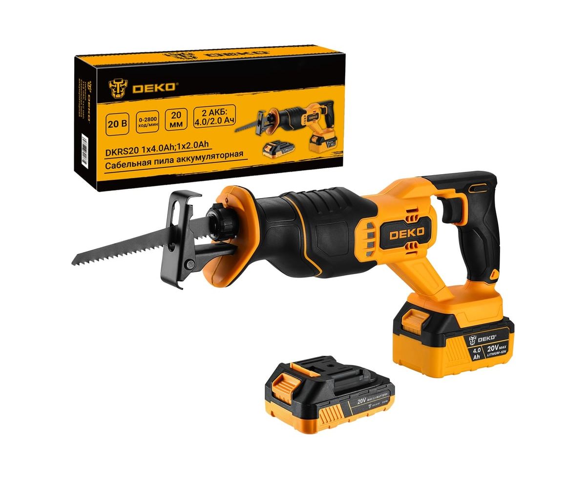 Пила сабельная DEKO DKHS20 Pro (085-1128) 20В, 2 АКБ: 1x4.0Ач, 1x2.0Ач