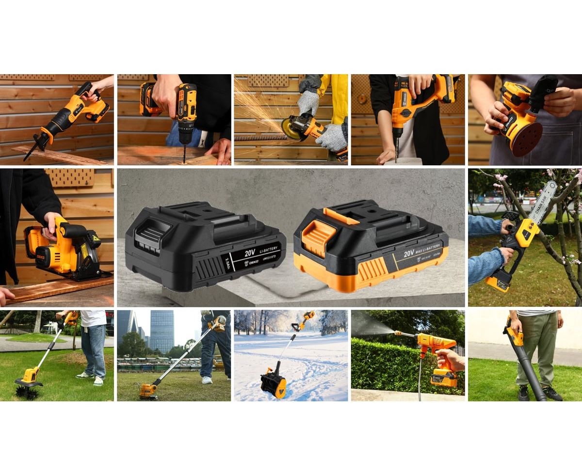 С аккумуляторами от щеточного инструмента DEKO, произведённым не ранее 2024 года"