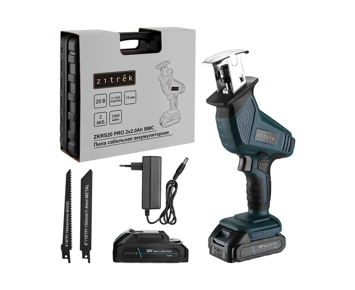 Пила сабельная аккумуляторная Zitrek ZKRS20 PRO 2x2.0Ah BMC предназначена для распила древесины, металла и прочих строительных материалов.
