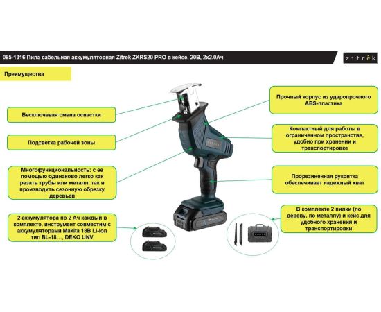 Пила сабельная Zitrek ZKRS20 Pro (085-1316) аккум.