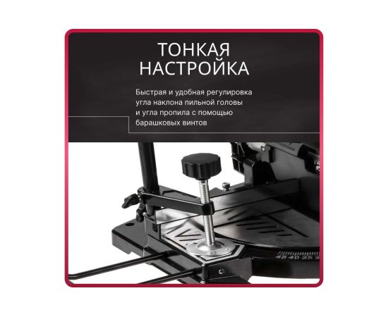 Быстрая и удобная регулировка угла наклона пильной головы и угла пропила с помощью барашковых винтов.