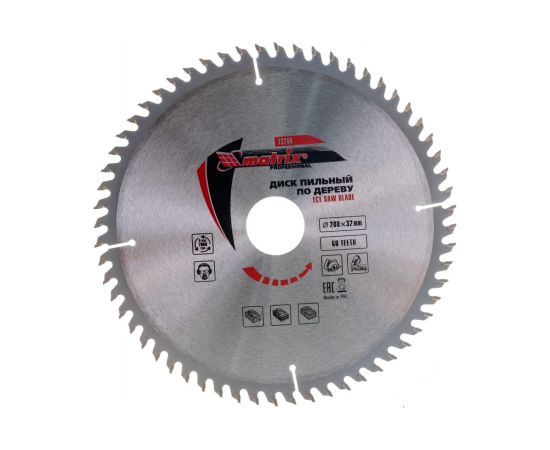 Пильный диск Matrix 73264 Professional по дереву 200x32мм, 60 зубьев, + кольцо, 30/32