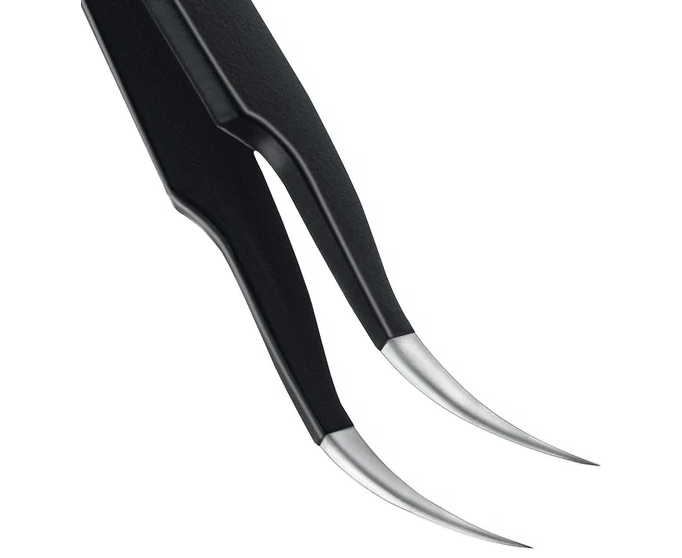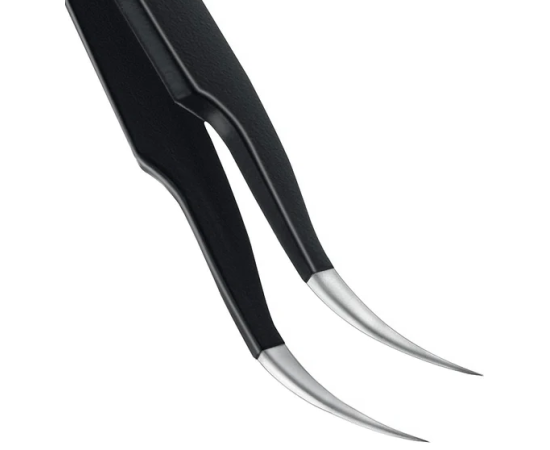 Прецизионный пинцет изготовлен из антимагнитной нержавеющей стали. Специальное покрытие ESD защищает от электростатического разряда