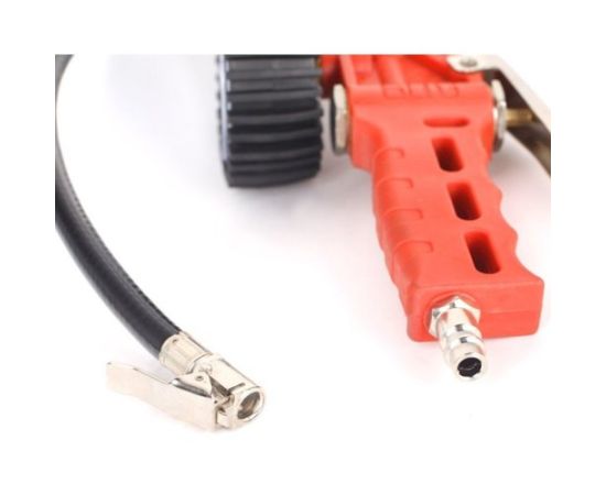 Описание Профессиональный пистолет для накачки шин с клапаном сброса давления; с манометром O80мм (0-12бар); шлангом 800мм и наконечником 25/W.