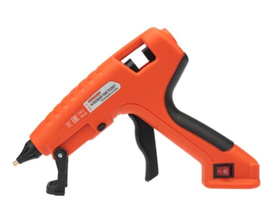 Принцип работы: клеевой стержень плавится в металлической камере с помощью нагревательного устройства и для точного дозированного нанесения при нажатии на курок подается из сопла на склеиваемую поверхность. Используется в моделировании, рукоделии, при выполнении мелкого ремонта, для изготовления упаковочной и сувенирной продукции, монтажа электрических плат, декорирования, и т.п.
