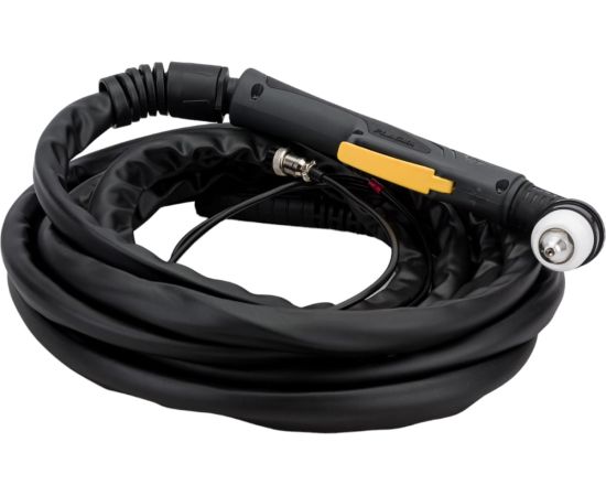 Резак плазменный P-80 6 м, М16x1.5 START ST80-6000 представляет собой надёжный резак для осуществления работ при использовании воздушно-плазменных установок. Плазмотрон с лёгкостью справится с резкой металла до 25 мм, а воздушный тип охлаждения поможет выполнить все запланированные работы без остановок и с высокой степенью продуктивности. Значительная длина шлейфа резака позволяет охватывать большую рабочую зону без дополнительного перемещения оборудования, что существенно облегчает и ускоряет весь рабочий процесс. Управление плазмотроном осуществляется при помощи удобного кнопочного управления.