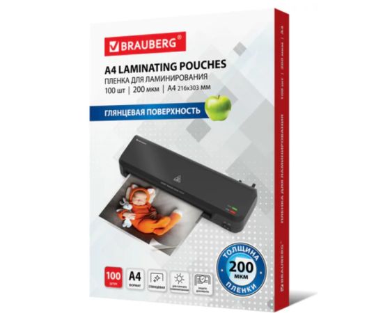 Пленки-заготовки для ламинирования BRAUBERG 531777 А4 200мкм 100шт