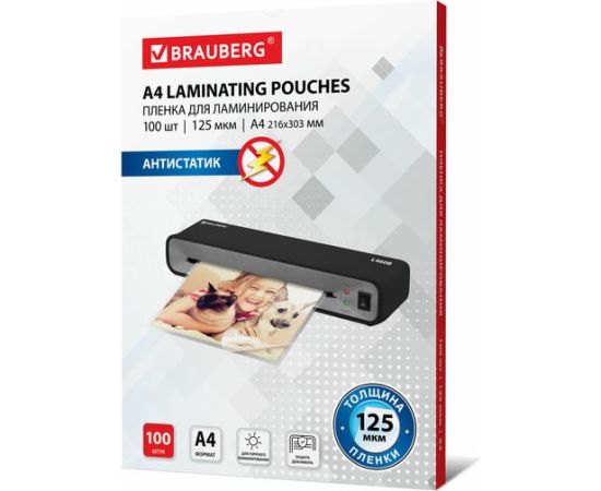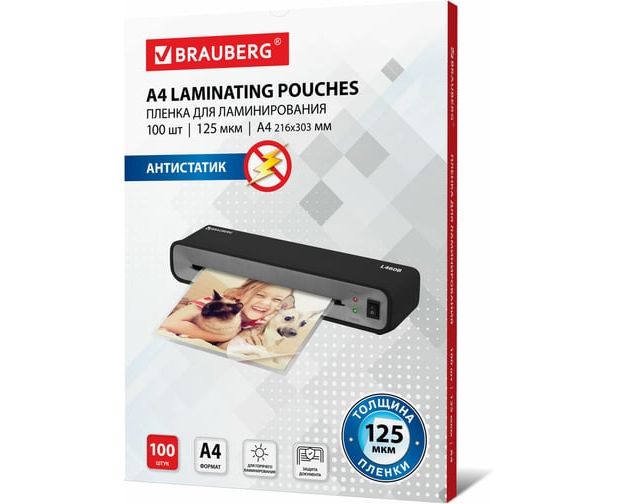 Пленки-заготовки для ламинирования BRAUBERG 531794 антистатик, А4 125мкм 100шт