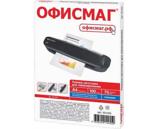 Пленка для ламинирования ОФИСМАГ придает документу стильный внешний вид, защищает от потертостей и других механических воздействий.