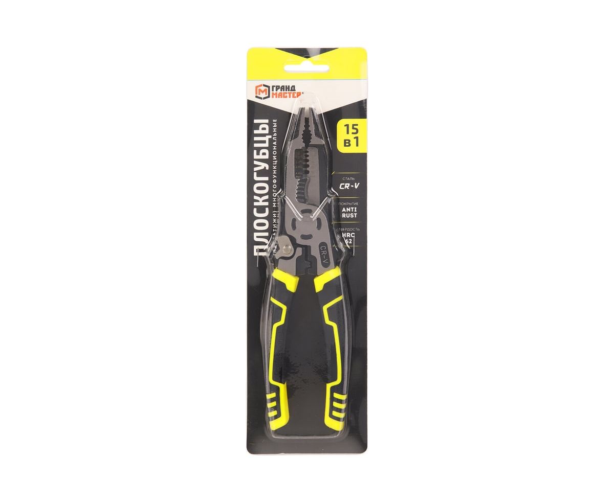 Плоскогубцы Грандмастер PL-225 (671258) многофункциональные 15 в 1, 225 мм, CrV хромванадиевая сталь