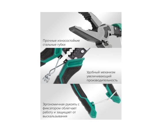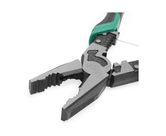 Современные плоскогубцы многофункциональные торговой марки Vell длиной 215 мм - инструмент для выполнения различных работ, включающий в себя: плоскогубцы, тонкогубцы, бокорезы, инструмент для зачистки кабеля, резак для проводов, напильник, инструмент для обжима клемм. Эксплуатируются для монтажных работ, в быту, для ремонта автомобилей, мотоциклов, механизмов и т.д. Режущие кромки закалены токами высокой частоты. Эргономичная двухкомпонентная ручка дает удобное размещение в руках во время работы и защищает кисть от различных повреждений. Инструмент многофункционален и имеет следующие возможности: обжим, зажимка, зачистка, откручивание, перекусывание.