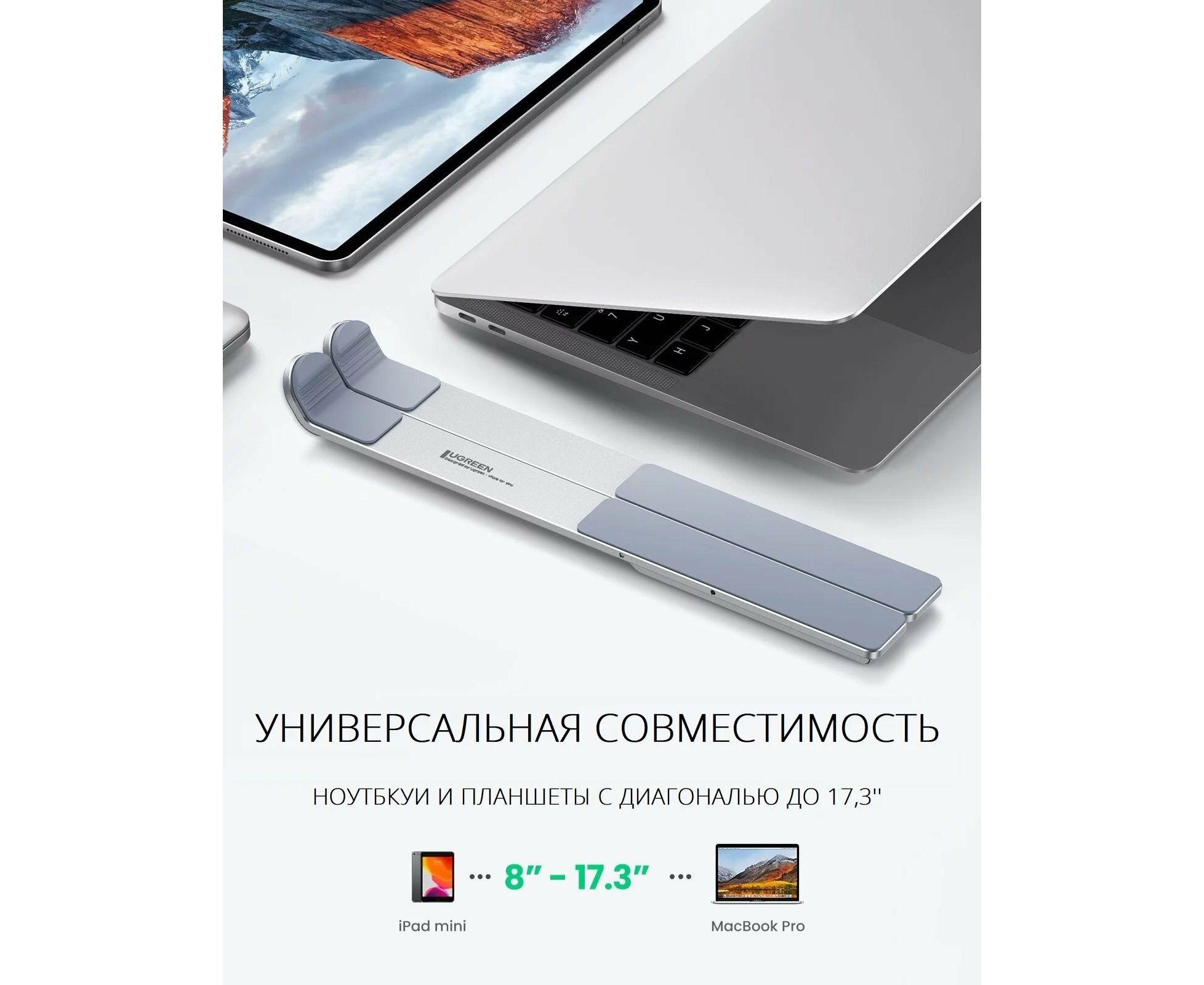 Подставка подходит для всех ноутбуков и планшетов, таких как: Macbook pro air, iPad Pro mini, Dell, HP, Lenovo, ThinkPad, Surface, Chromebook, Microsoft Surface и т. д. Если ваше устройство соответствует требования к размеру и весу, тогда эта портативная подставка для ноутбука подойдет и вашему устройству.
