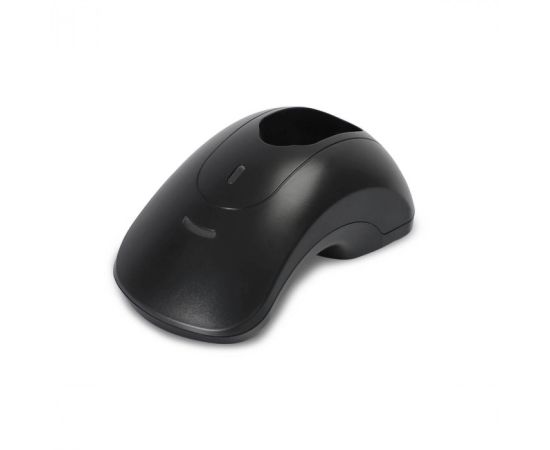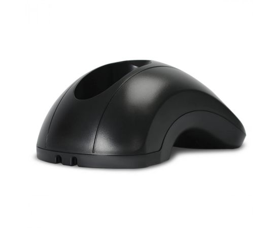 Конструкция сделана из прочного пластика. Форма корпуса гарантирует ее устойчивость. Нижняя часть основания не скользит на любых поверхностях. За надежное крепление устройства отвечает магнитный фиксатор. Прибор легко устанавливается на держатель и быстро извлекается из слота. Возможна перенастройка на работу через USB-COM с помощью настроечного штрих-кода.