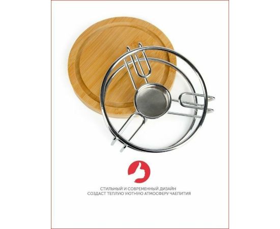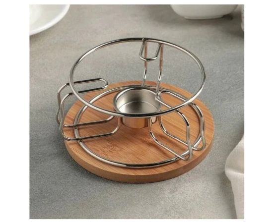 Стильная подставка Zeidan Z-11030 для подогрева блюд из высококачественной нержавеющей стали и бамбука под греющую свечу.